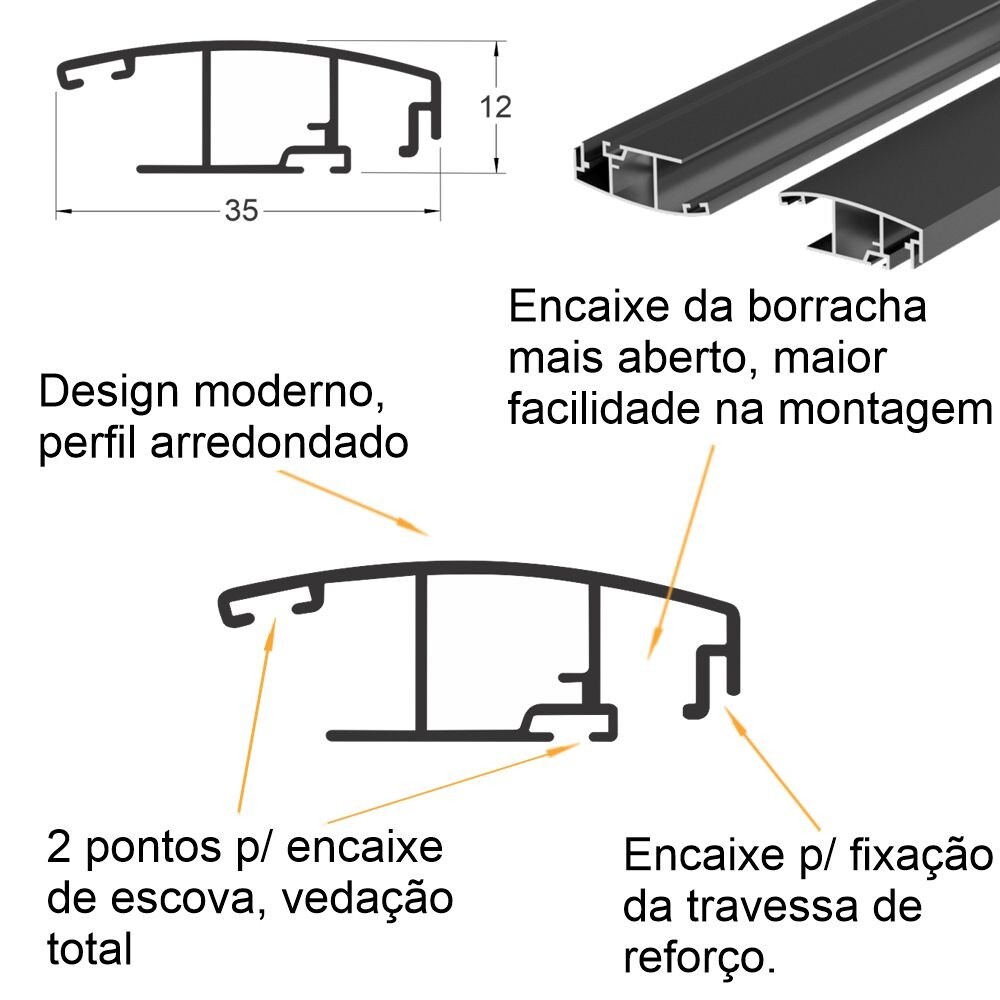 - Perfil de alumínio com pintura eletrostática PRETA.